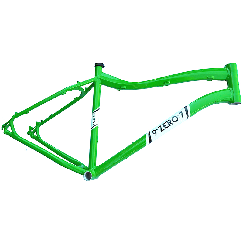 Like previous 9:ZERO:7 frames, it is crafted out of 7005 aluminum and offers a host of features to optimize your fat tire experience. Starting with an elongated head-tube and longer chain-stays, the 9:ZERO:7 features six rack mounts, three water bottle mounts, fender mounts, and full cable housing.