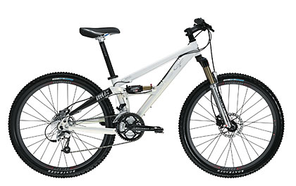 Frame Platinum Series ZR9000 double-butted aluminum | Genesisters Geometry Wheels Bontrager Select Disc Specific wheelsystem | Bontrager ACX 26x2.2 tires Suspension RockShox Recon 351 Air | External rebound, external compression and lock-out | Motion Control | 100mm travel | Manitou Swinger 3-Way SPV, external rebound Componentry Shimano M571 LX rear derailleur + Shimano M511 Deore shifters + Shimano M510 Deore front derailleur | Bontrager Select 44/32/22 crank | Hayes HFX-9 XC hydraulic disc, 6" rotor brakes w/ Hayes hydraulic levers | Shimano M505 ATB clipless pedals | (Full Specs) MSRP $1759.99